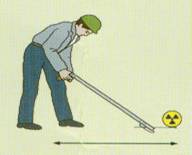 当发现无人管理的标有电离辐射标志物体,或者体积小却较重的金属罐(特别是铅罐),请你: